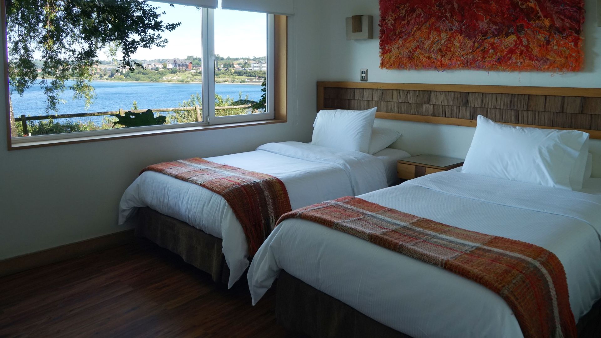 Nuestras Eco Cabaña Twin cuentan con 2 camas individuales para dos personas máximo en 25 mt2. Todas las habitaciones de nuestro hotel tienen vista al Lago Llanquihue y bahía de Puerto Varas. Equipadas con TV LCD cable, caja de seguridad, minibar (con cargo extra), baño privado, amenidades, secador de pelo, servicio de lavandería.